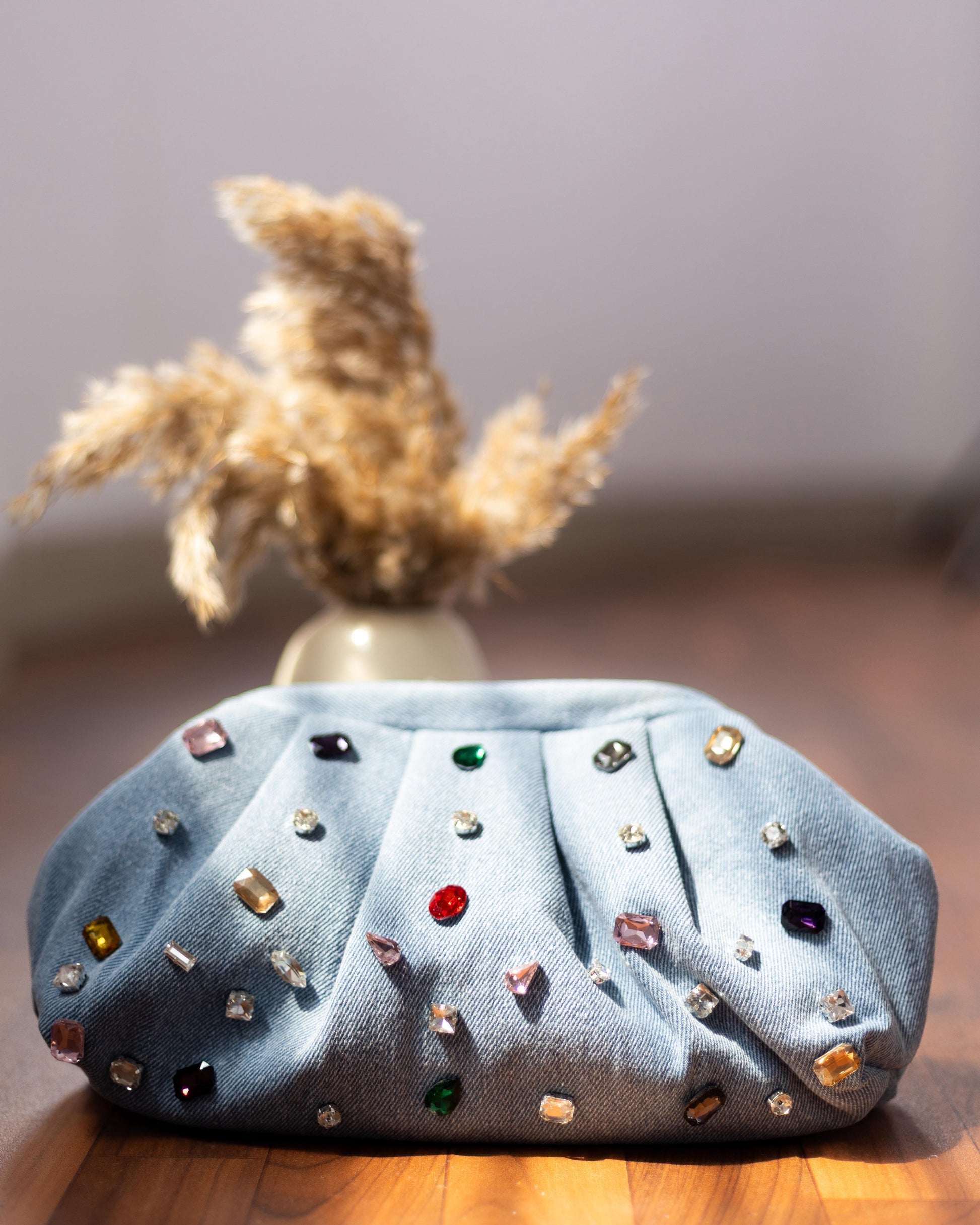 Make a Dazzling Statement: The Jewelled Midnight Denim Batwa Clutch!