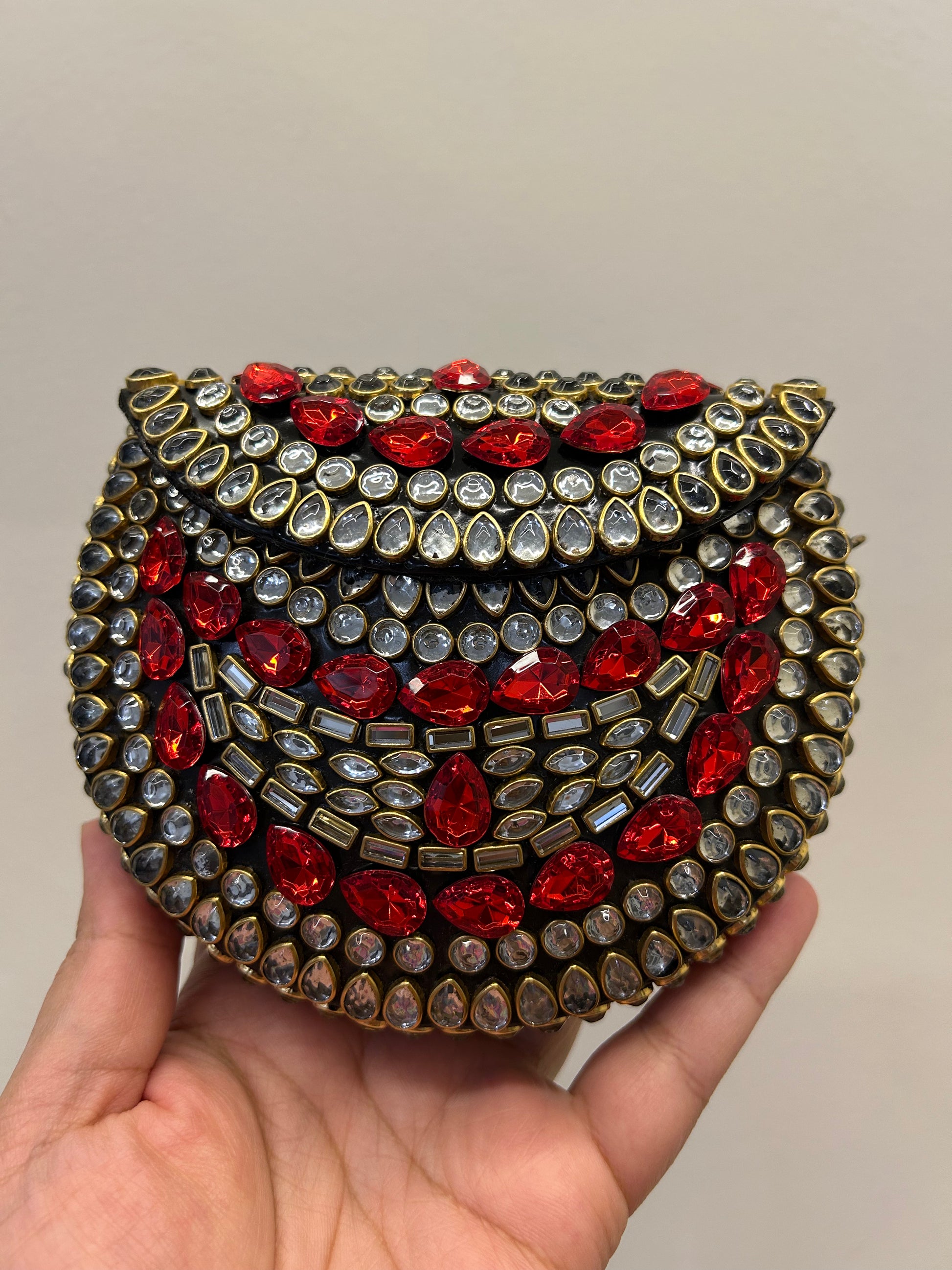 Compact yet spacious enough for essentials, the Nayab Kundan Mini is also an ideal choice for thoughtful gifting and wedding favors. Affordable, elegant, and versatile — it’s a keepsake that will be cherished long after the celebration ends.