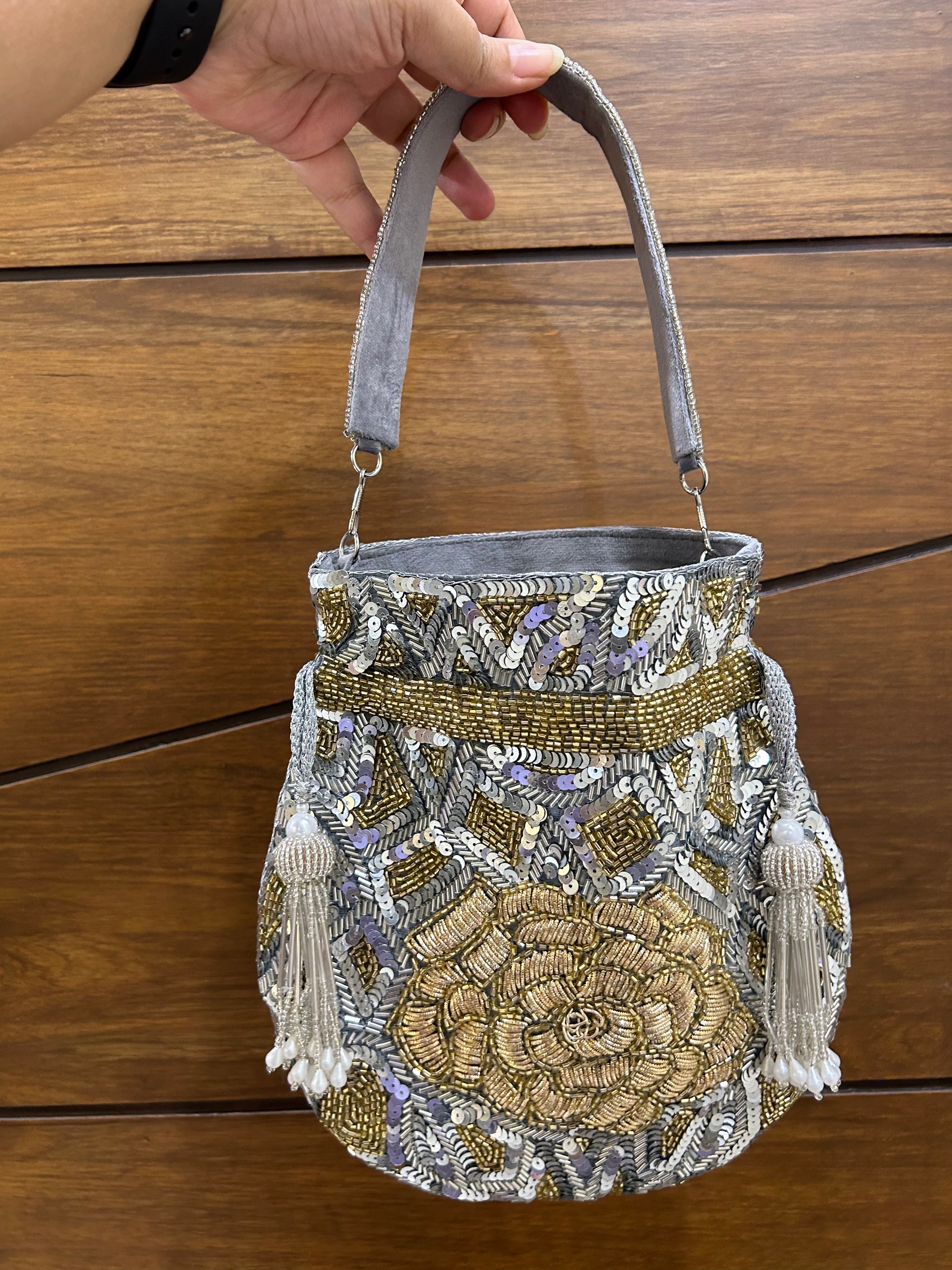 Made for festive giving and graceful dressing, this potli fits your essentials while adding an effortless shimmer to your ensemble. Whether it’s for someone special or yourself, Noorani wraps tradition in a soft, luxurious touch.