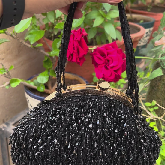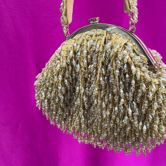 Radiating subtle brilliance, the Zariah Crystal Bag blends the shimmer of crystals with the finesse of cutdana embroidery. Its handcrafted detailing speaks of timeless sophistication, making it an effortlessly elegant choice for special occasions.