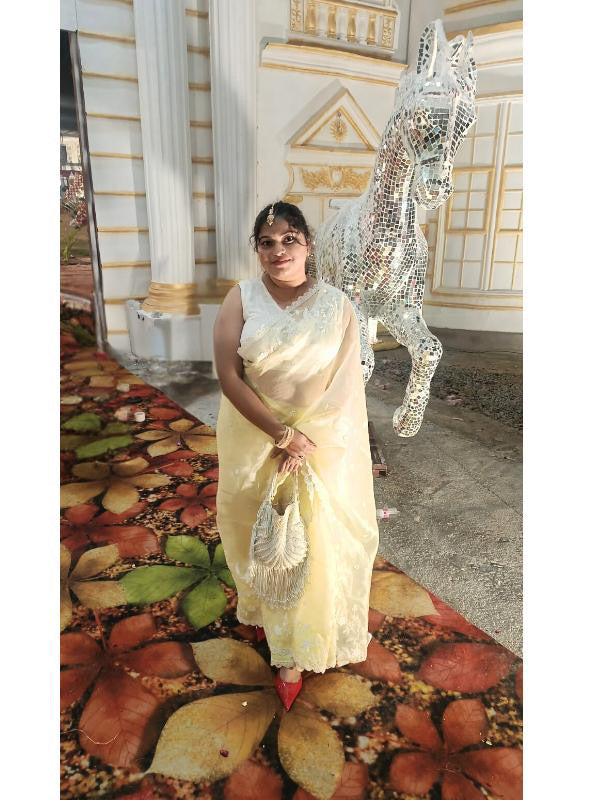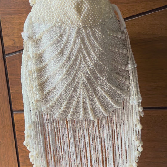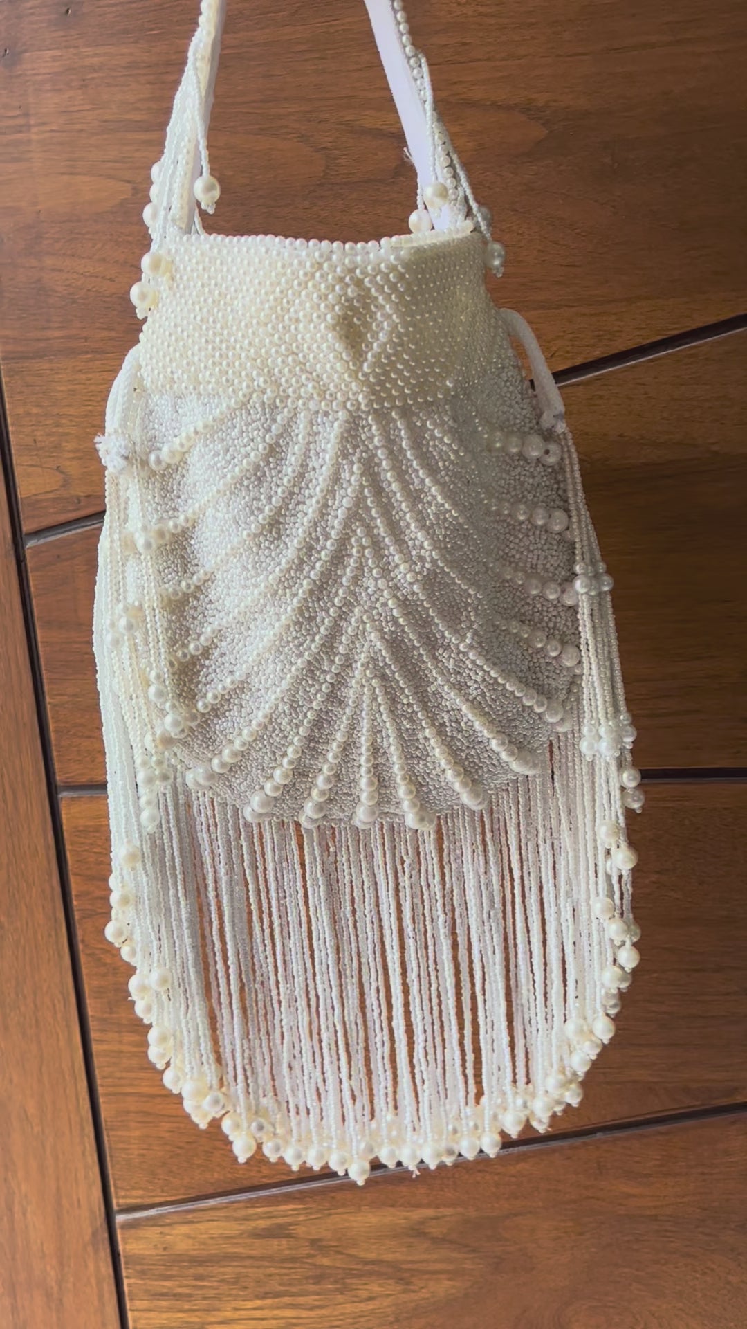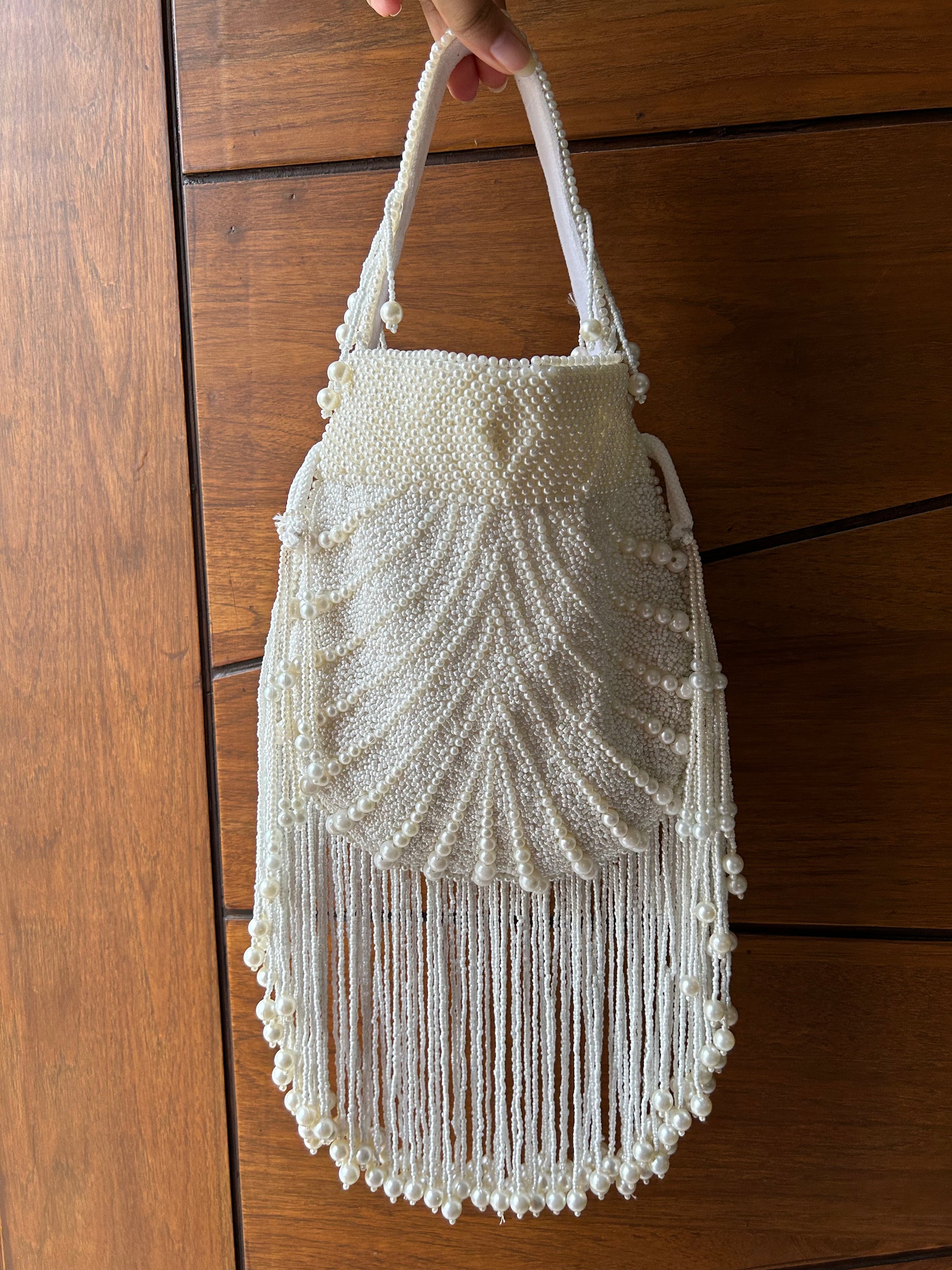 Elevate your festive and wedding looks with the Zarrah Pearl Potli — a statement of refined elegance. Adorned with delicate pearls throughout, this handcrafted potli exudes charm and grace. Its structured silhouette fits all your essentials, including a phone, while maintaining a light, sophisticated feel. Designed in a timeless ivory tone, this piece pairs beautifully with traditional and contemporary outfits alike. Whether it's a mehendi celebration or a regal reception, the Zarrah Pearl Potli adds a luminous finishing touch to your ensemble.